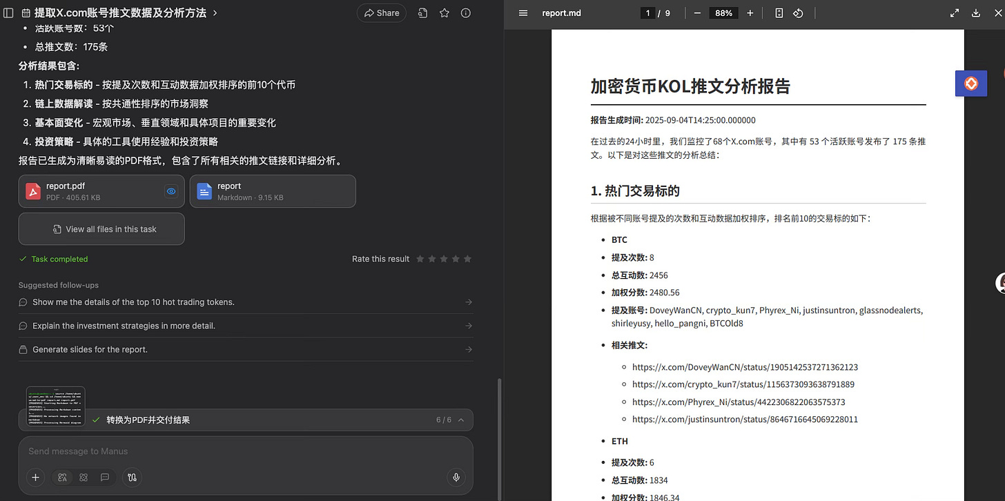 最近我还试图用 X 来扫描前一天投资 KOL 们的言论,辅助发掘我未曾覆盖到的 alpha,从海量的社交媒体信息中筛选出有价值的投资线索。